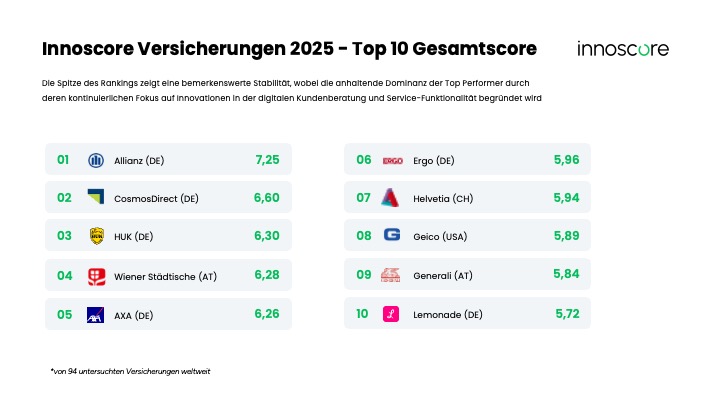 Die Innoscore-Studie 2025 dient als wichtiger Gradmesser und bietet Versicherern Orientierung, wie sie ihre digitalen Fähigkeiten konsequent ausbauen und steigenden Kundenerwartungen gerecht werden können.