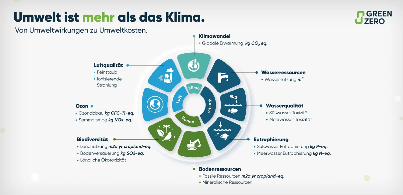 Der Anspruch: Nachhaltigkeit soll nicht nur ein Ideal bleiben, sondern zu einer messbaren, steuerbaren und wirtschaftlich integrierten Größe unternehmerischen Handelns werden. Dazu kombiniert GREENZERO wissenschaftliche Ökobilanzierung nach internationalen ISO-Standards (14040/44) mit modernster KI-gestützter Datenanalyse. Das System erfasst und bewertet Umweltwirkungen weit über den klassischen CO₂-Fußabdruck hinaus – etwa in den Bereichen Wasserverbrauch, Landnutzung, Eutrophierung, Ozonabbau oder Ökotoxizität – und übersetzt sie in vergleichbare Umweltkosten (EUR). So entsteht ein präzises, digitales Abbild ökologischer Zusammenhänge, das es Unternehmen ermöglicht, Hotspots in Produktportfolios zu identifizieren, Reduktionsstrategien gezielt umzusetzen und verbleibende Wirkungen durch lokale Renaturierung ins Gleichgewicht zu bringen.