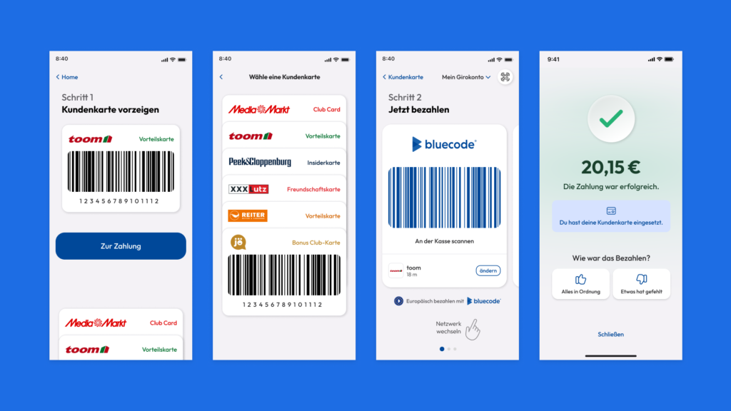 Challenge II – Implementing “Beyond Payment” Service: Bluecode wants to attract its users, not only with the payment function, but with additional services too. It was crucial, therefore, to identify the best “Beyond Payment” service concept and integrate it seamlessly into the existing payment process.
