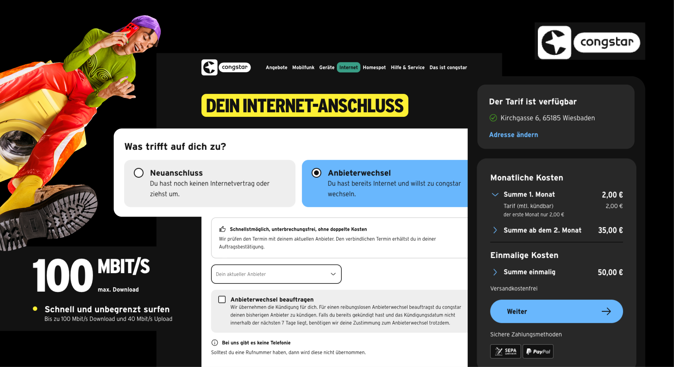 After congstar successfully launched its new DSL offering, a phase of intensive learning followed: data analyses, UX research, and customer feedback revealed concrete potential. On this basis, the DSL overview page, including the availability check, was optimized – with measurable success: the add-to-cart rate rose by 33%. At the same time, the page impresses with congstar's typical user-friendliness. Customers benefit from immediate assistance in just 20 seconds, flexible contract terms, stable internet, and consistently fair prices.