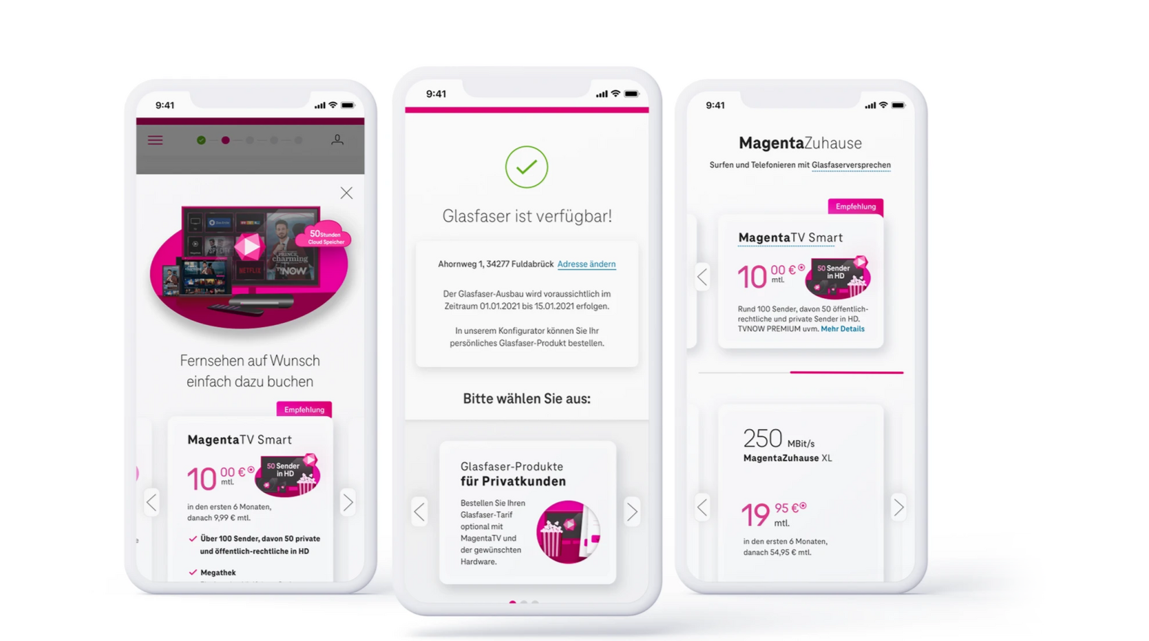Das Portal ist benutzerzentrisch konzipiert. Ob Dateneingabe oder Informationsabfrage, die Customer Experience steht im Fokus: Der Endkunde wickelt bei Bedarf alle Prozesse einfach und selbstständig über die digitale Lösung ab. Das reduziert seinen Aufwand und die erforderlichen Kontaktpunkte zum Kundenservice bis zur Bereitstellung des Tarifs. Zugleich schafft das Onlineportal Prozesstransparenz: Status von Glasfaserausbau oder Kundenauftrag sind jederzeit in Echtzeit einsehbar – für ein rundum verbessertes Kundenerlebnis. Die herkömmlichen Wege über Kundenhotline, Shops der Deutschen Telekom sowie externe Händler sind weiterhin möglich – selbstverständlich ist der Zugriff auf Kundendaten dabei auf interne Stellen beschränkt und unterliegt hohen Datensicherheits- und Datenschutzvorgaben.